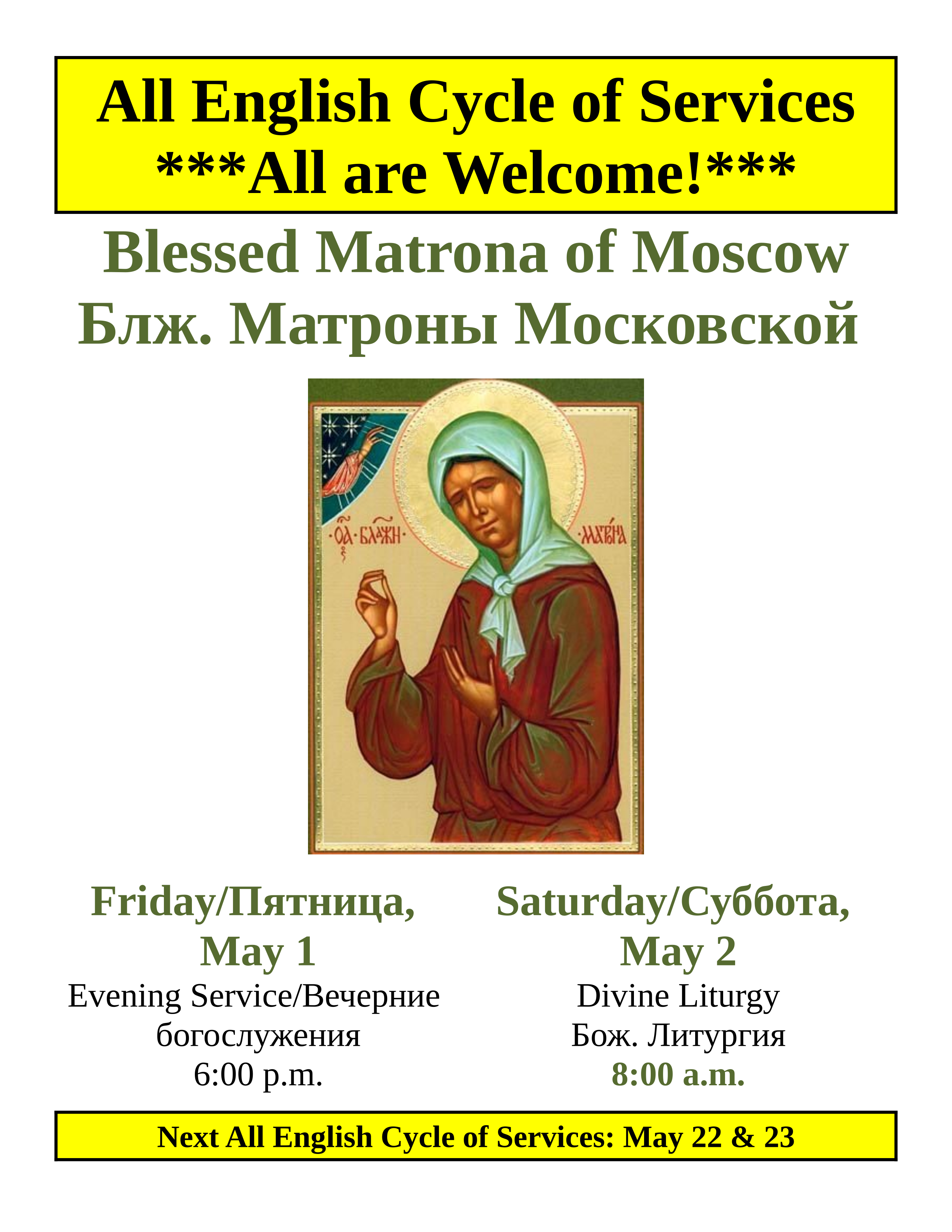 Sunday Divine Liturgy: 10:00 a.m. (Except Pascha)