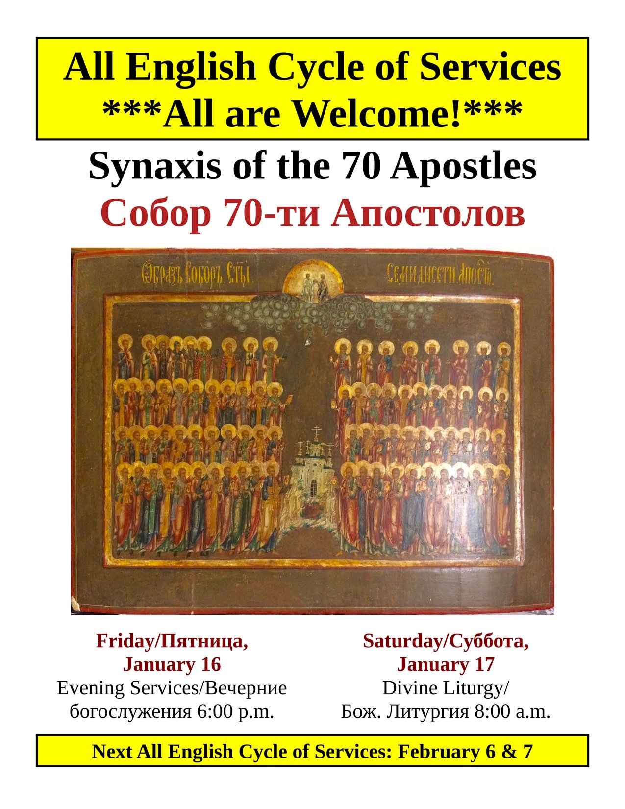 Saturday Vigil: 6:00 p.m. (Except Pascha)