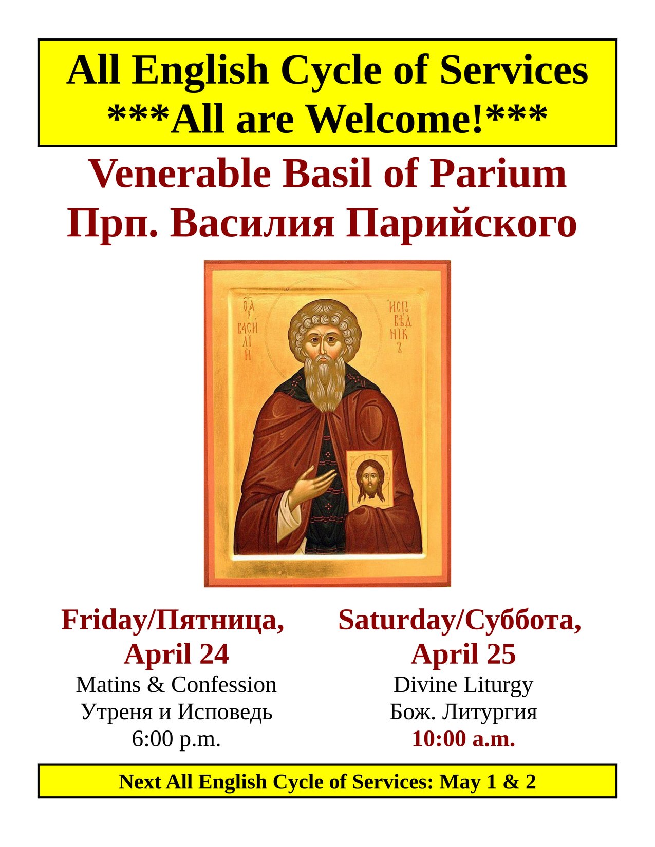 Saturday Vigil: 6:00 p.m. (Except Pascha)