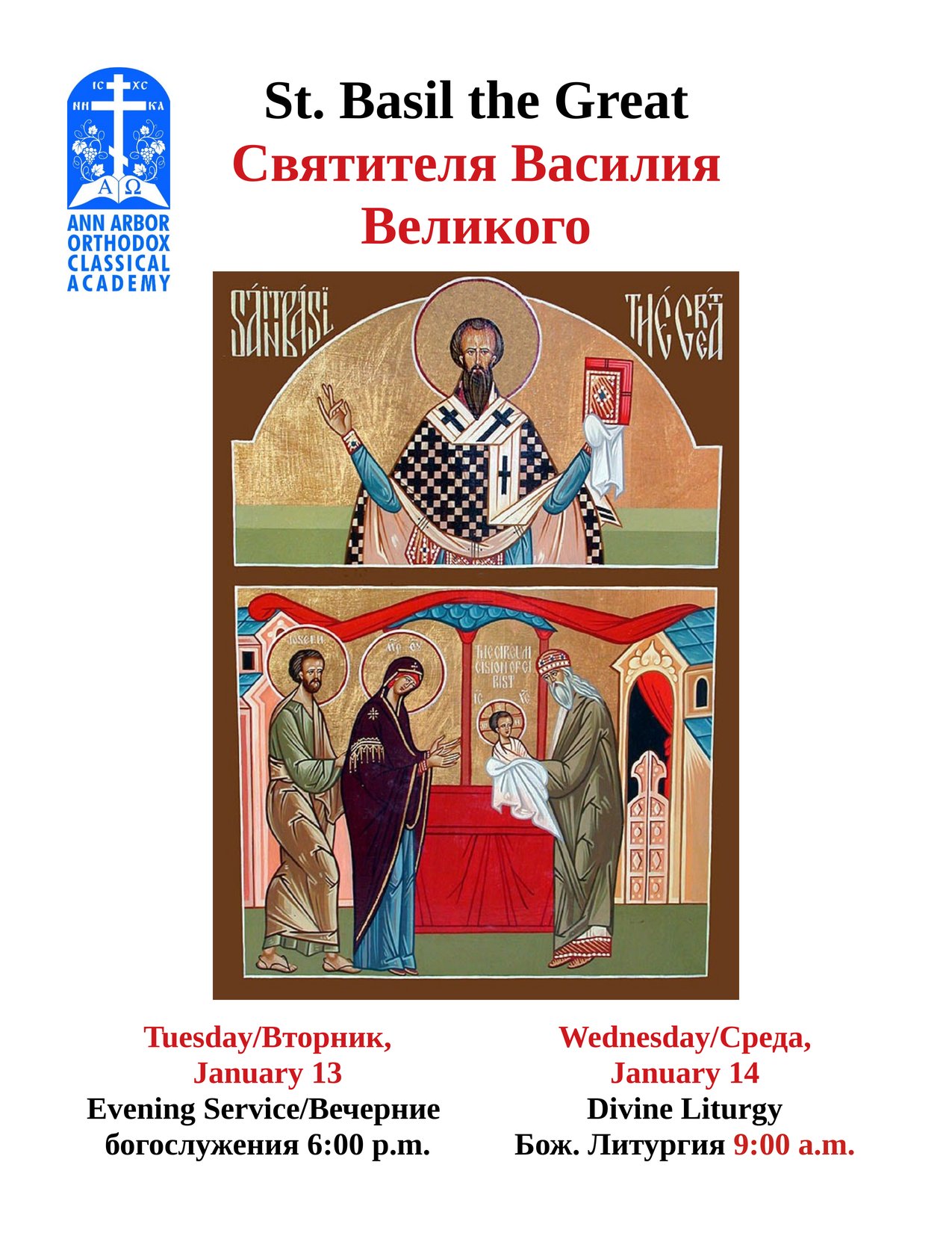Regular Services: Saturday Vigil: 6:00 p.m. (Except Pascha) Sunday Divine Liturgy: 10:00 a.m. (Except Pascha) Full Service Schedule: Phone: (734) 475-4590 Address: 9900 Jackson Rd., Dexter, MI 48130-9426 Click for Directions | Google Map |