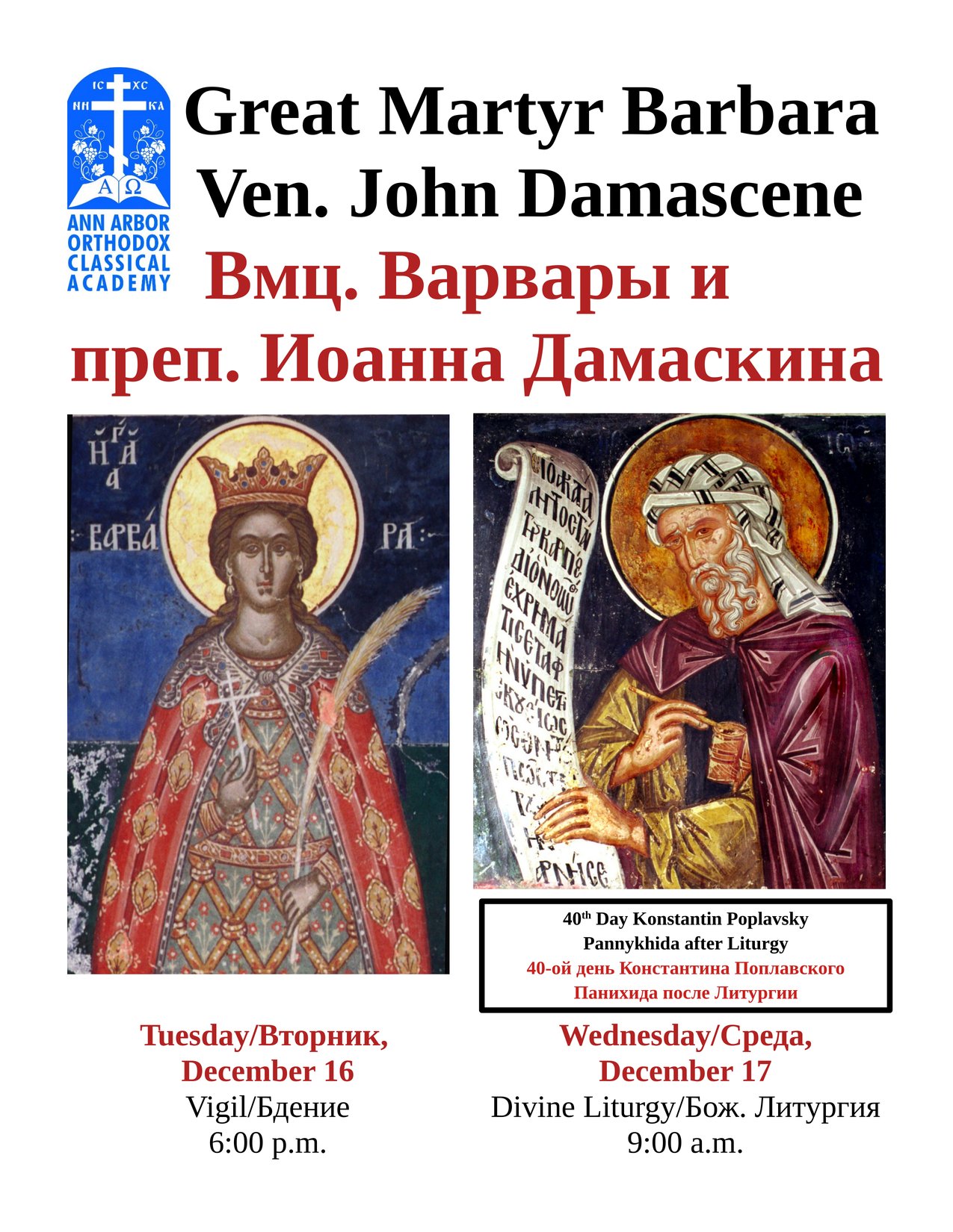 Saturday Vigil: 6:00 p.m. (Except Pascha)