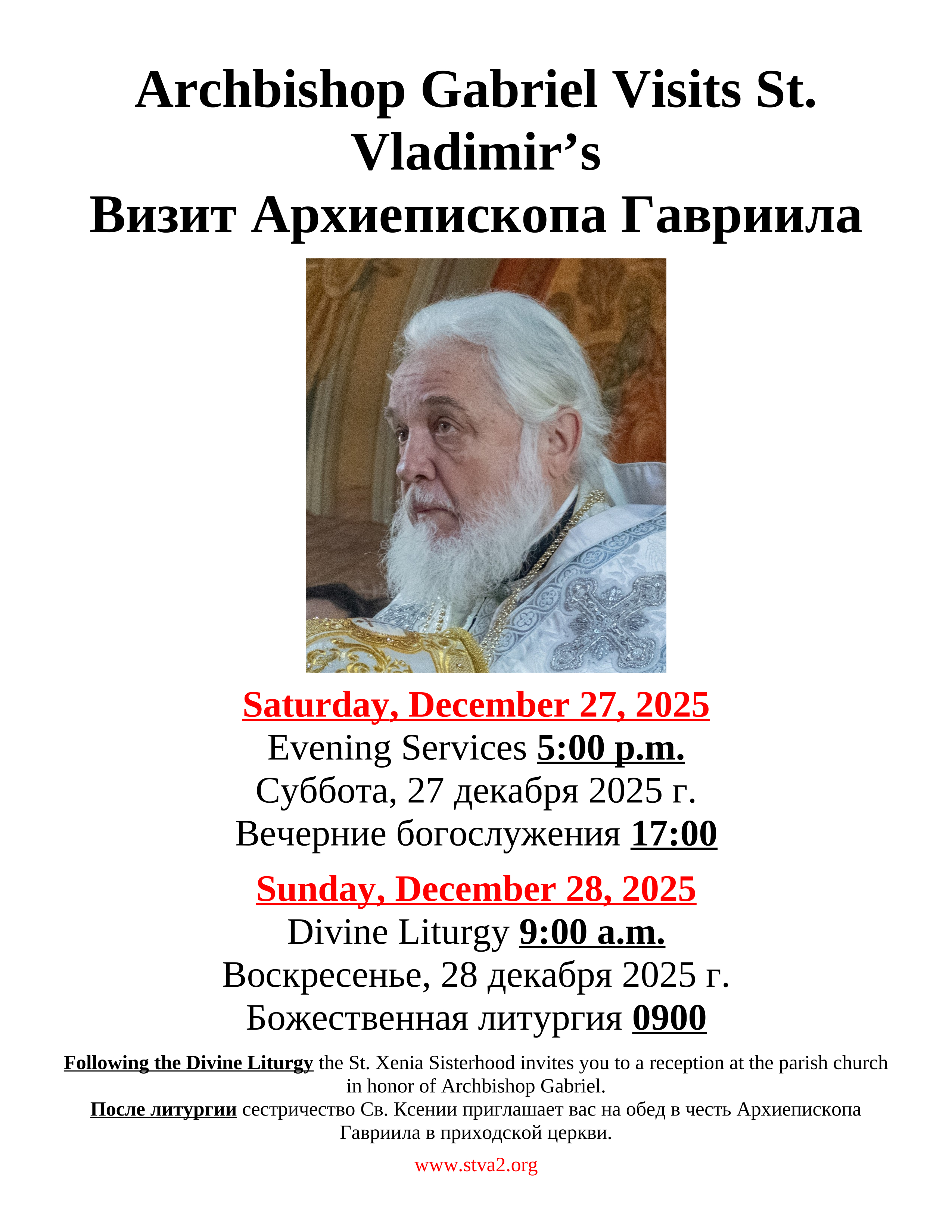 Archbishop Gabriel Visits STV THIS WEEKEND!