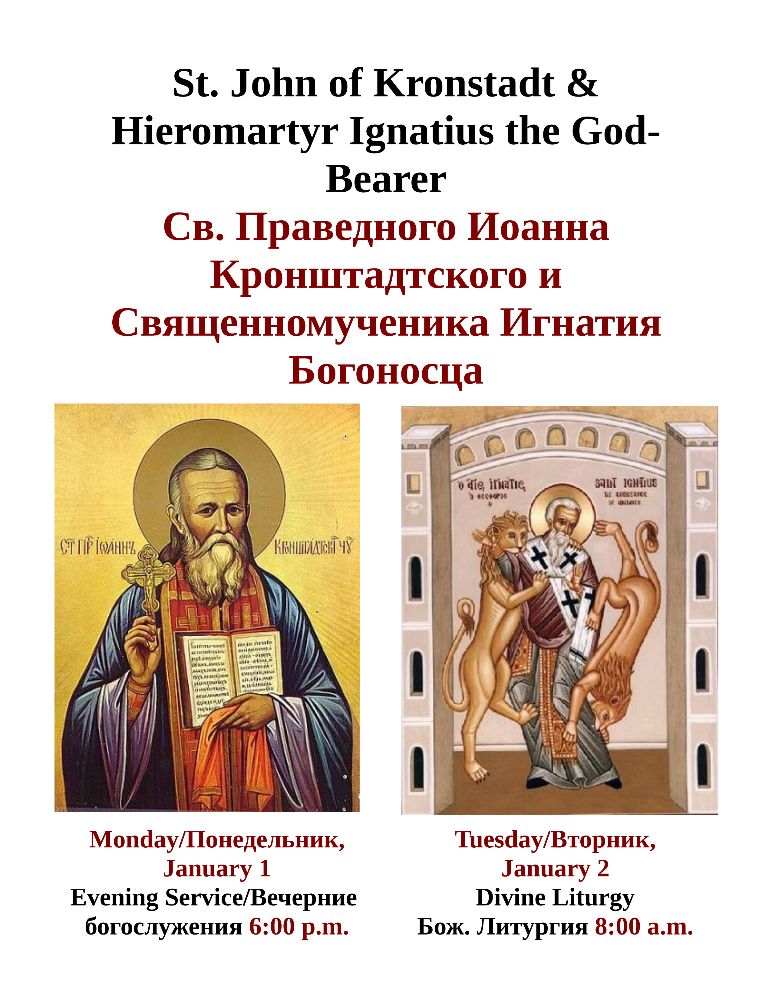 Monday, January 1: Confession during and following Evening Services beginning at 6:00 p.m.