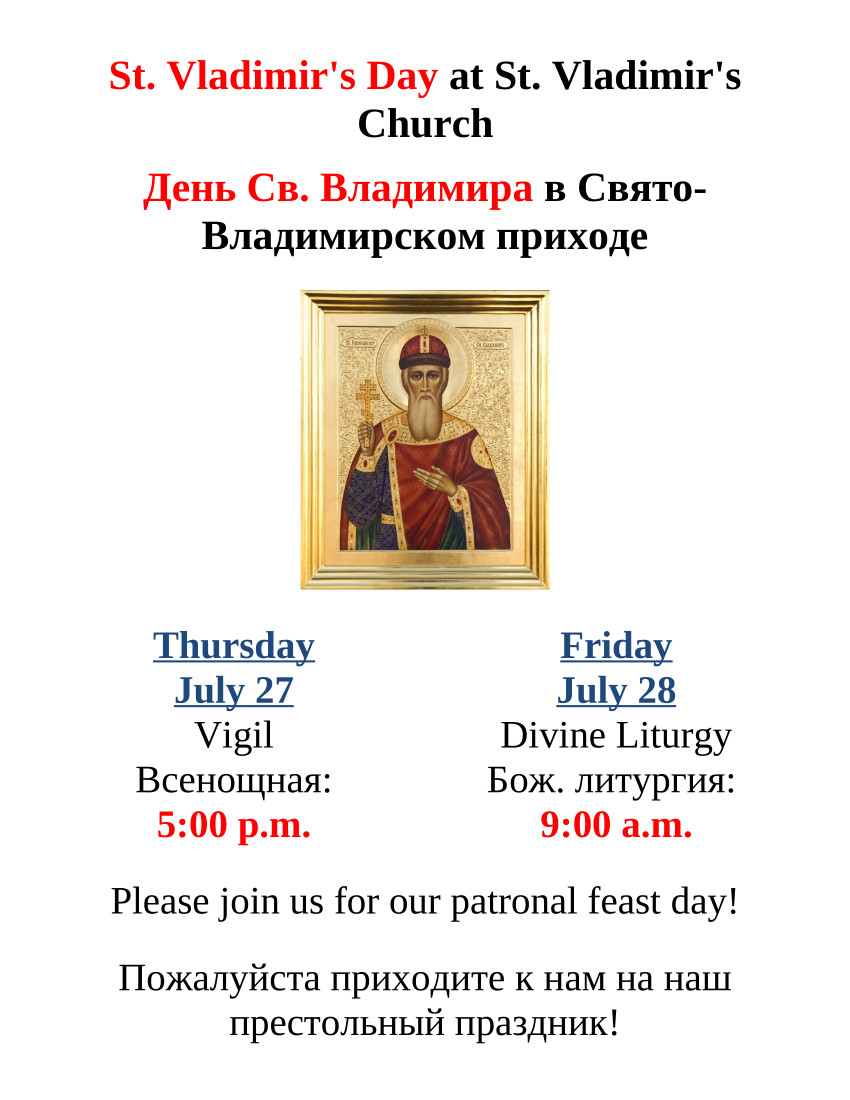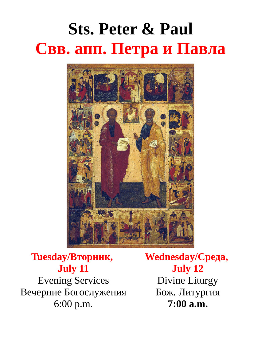 Other set dates: August 13 (not at Fr. Gregory’s), October 1.