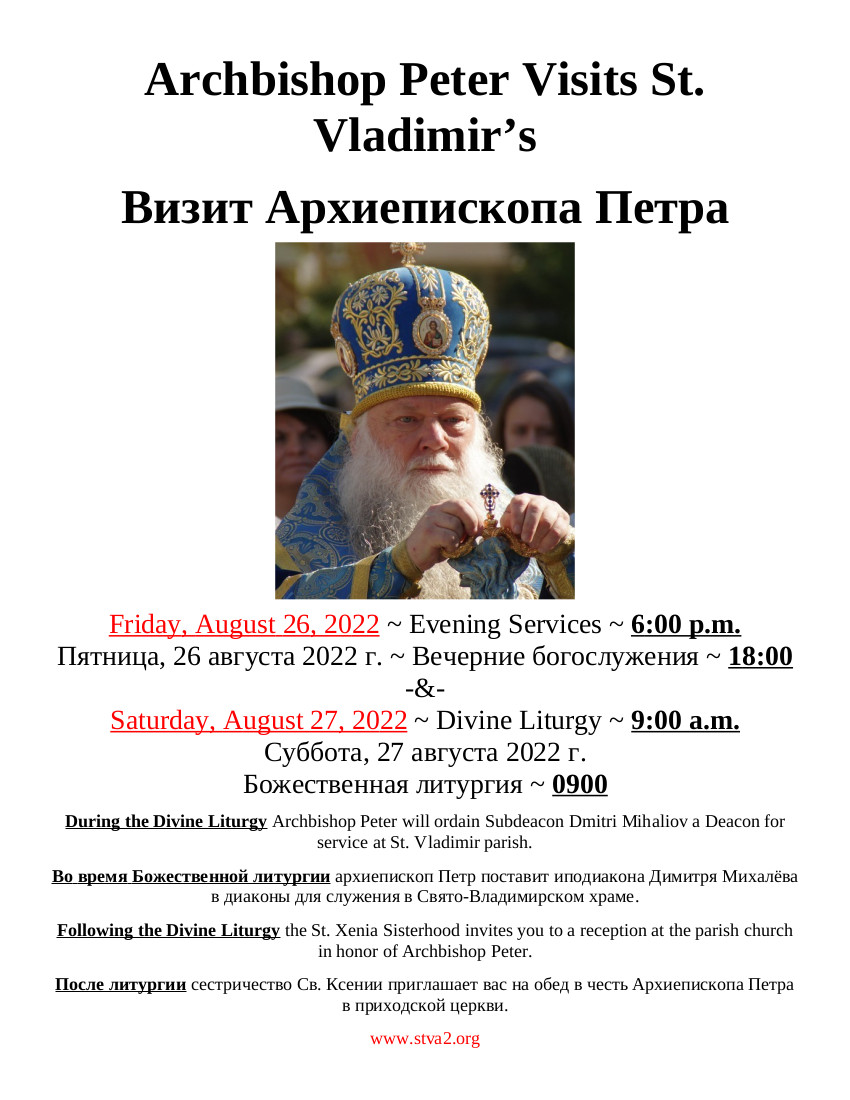 In order to help increase the general knowledge of scripture in our parish family we present here for your edification the scripture readings for the coming week. At least one Gospel Reading and one Epistle reading are assigned for each day of the year (although during Great Lent the readings are from the Old Testament). Hearing or reading only those readings appointed for Sunday merely scratches the surface of the great spiritual wealth that the scriptures provide us. Some of the readings are easily understandable – others are less so. As Orthodox Christians we do not make private interpretation of scripture, but rather consult the fathers of the Church for their explanations to aid us in our understanding. Those wishing to have access to such explanations are asked to contact Fr. Gregory or inquire in the kiosk for further reading in this regard. Bibles may also be acquired in the kiosk.
